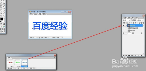 用鼠标点击选择第二个图层,然后如图,用鼠标去点击第三个图层的眼睛,关失落。反复第四步,点窜对应文本的颜色。点窜好后,反复如图的工作。