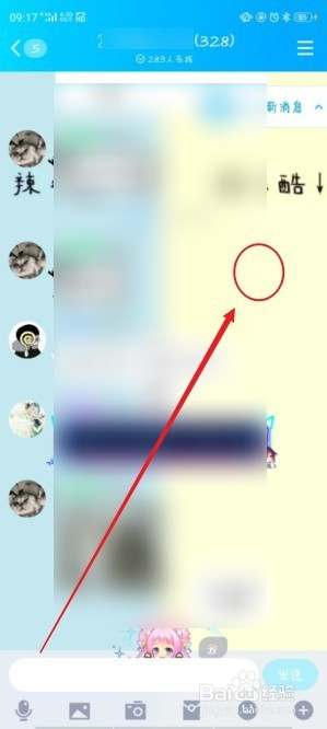 然后在其聊天界面中找到没有动静的空位,然后用手指进行长按操作,如图所示。