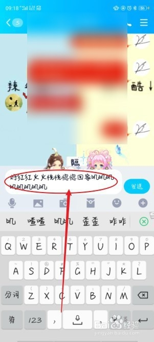 进入了响应的聊天窗口中,我们就可以输入文字,进行发送动静啦!如图所示。