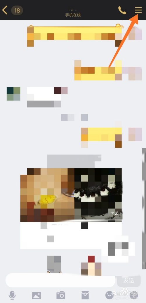 点击后进入该老友的聊天界面,接着点击右上角箭头处的“三个横线”图标。