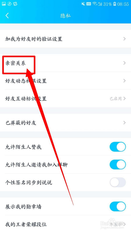 这里,我们可以看到“亲密关系”这个选项,我们点击它。