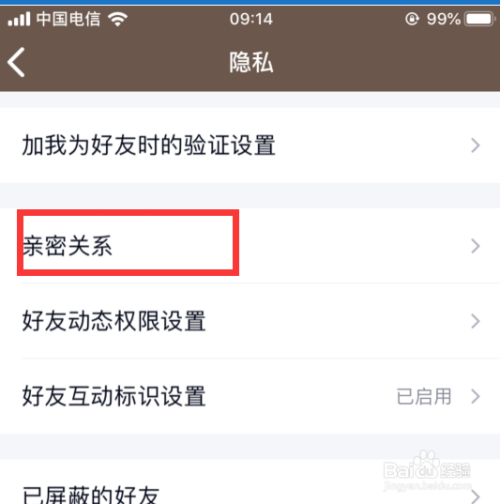 进入后,点击亲密关系。