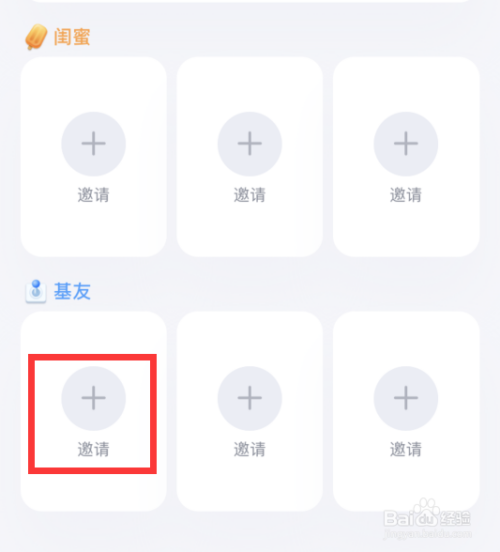 在亲密关系设置界面,选择基友下方的邀请。