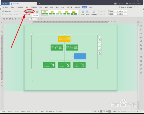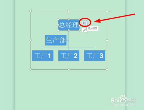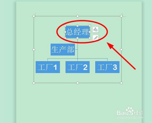 若是需要在某一层级下面添加一个单元,可以选中其上级单元,好比想要在“总司理”下面添加“发卖部”,就要选中“总司理”文本框