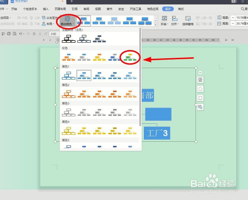 若是对组织布局图的清单颜色不对劲,还可以单击“更改颜色”,在弹出的颜色选项中选择一种对劲的单击