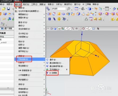 进入N边曲面号令。插入-网格曲线-N边曲面