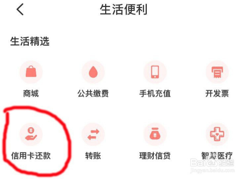 点击首页的“更多”,点击“信用卡还条目”,红包可以抵扣还条目金额