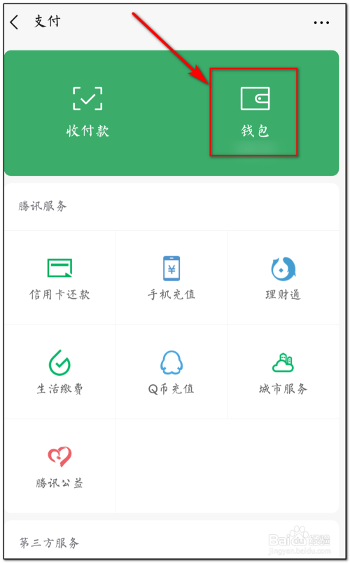 在支付界面点击钱包