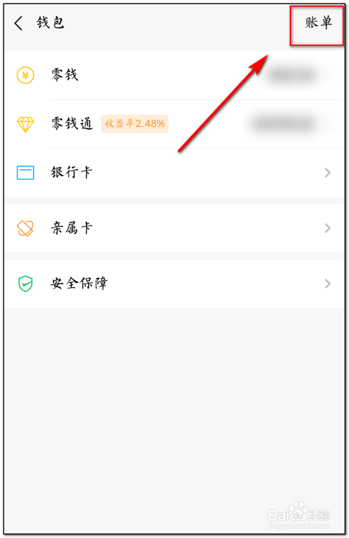 在钱包界面点击页面右上角“账单”