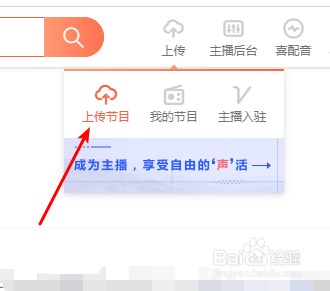 在其官网上方找到“上传”的图标,点击;鄙人拉菜单选择上传节目