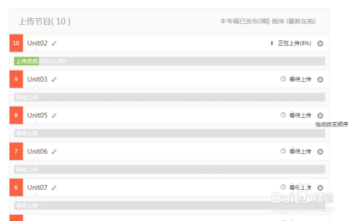 上传的音频文件是可以批量的,上传完当作后就可以点发布。