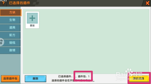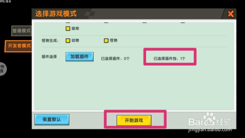 主动返回到上一页,显示已选择插件包一个,点击【起头游戏】。