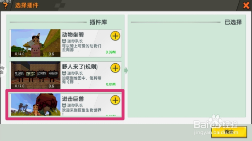 进入选择插件,点击【进击巨兽】的加号按钮。