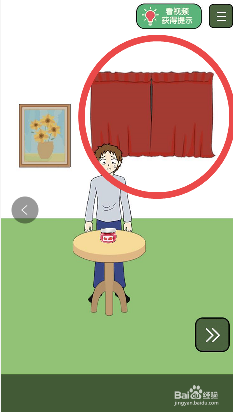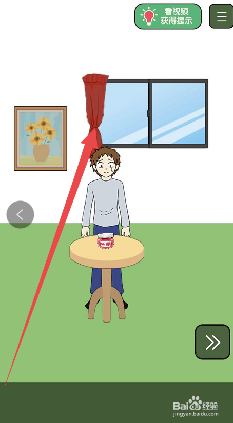 点击瓶盖子打不开手游的第十二关,起头第十二关的脑洞挑战。在第十二关的挑战页面内,可以看见在布景中有一扇拉着红色的窗帘的窗户,点击这个红色的窗帘,之后窗帘就会都卷在左侧的窗户边上。