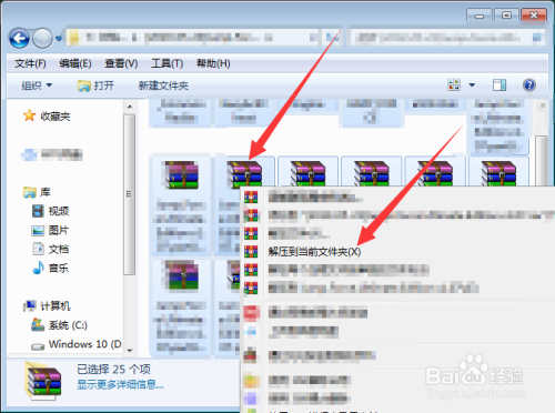 全选游戏文件的所有压缩文件,鼠标右击选择解压到当前文件夹。