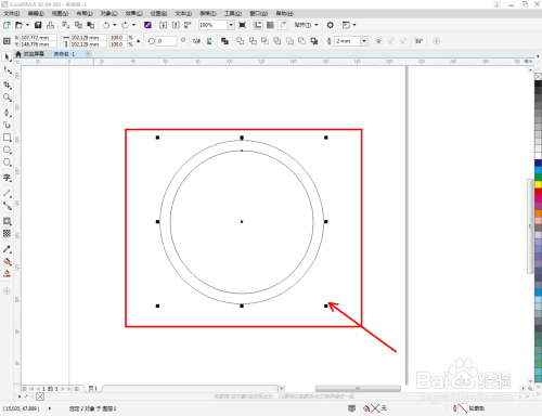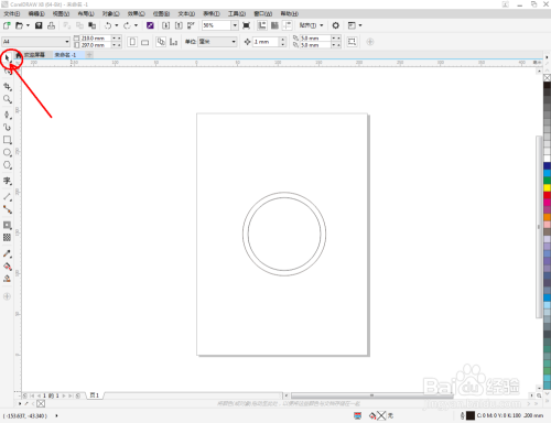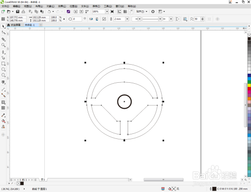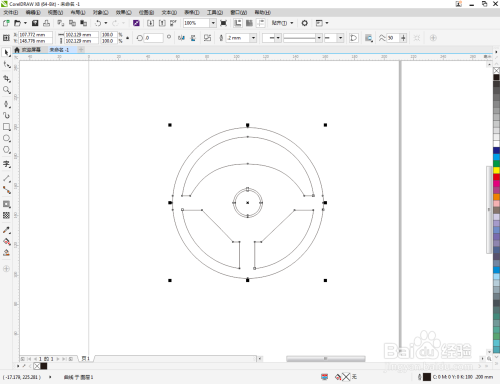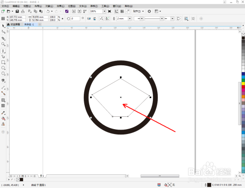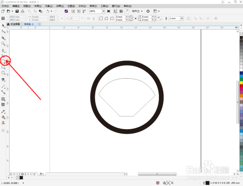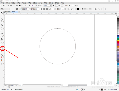 点击【卵形东西】在作图区域绘制一个圆形图案。点击【轮廓图】拉动圆形图案进行轮廓处置后,点击鼠标右键-【拆分轮廓图群组】将图案拆分(如图所示);