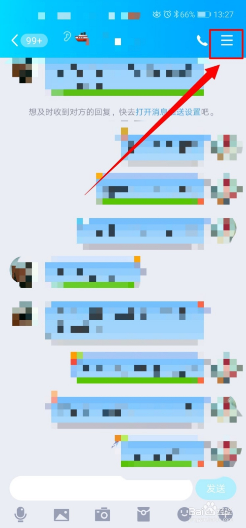 进入聊天页面后,点击右上角的三条横线。