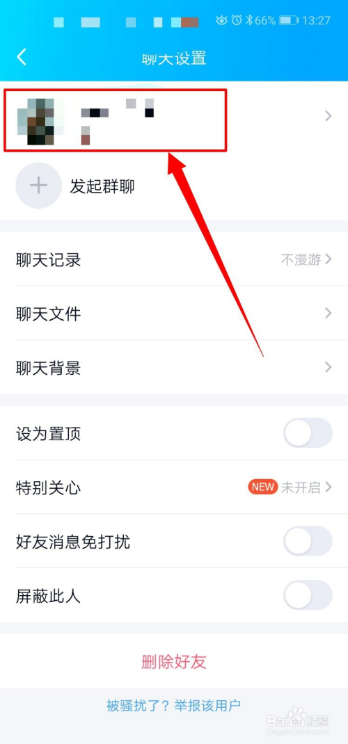 进入聊天设置页面,点击上方的老友头像。