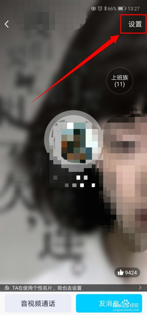 进入老友小我资料页面后,点击右上角的设置。