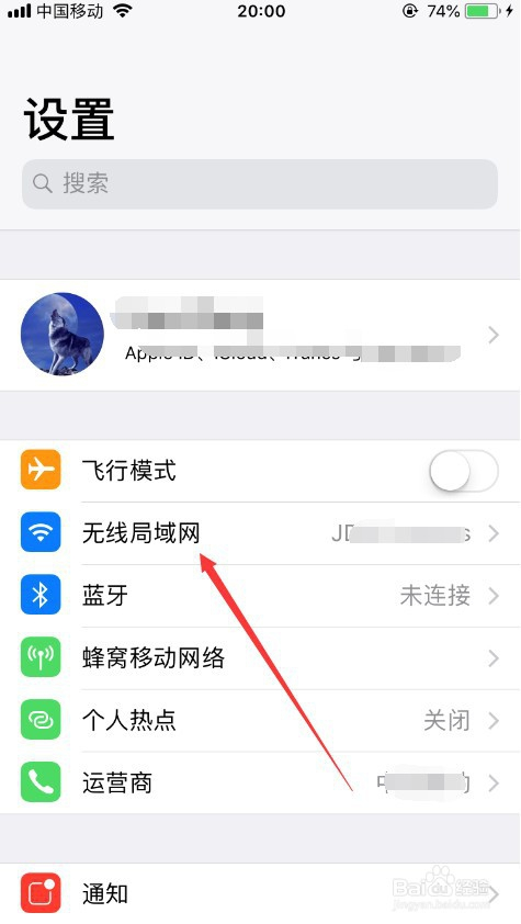 进入手机的设置功能之后,选择“无线局域网”,点击进入,如图所示。