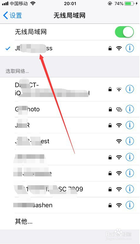 进入无线局域网之后,选择一个要设置HTTP代办署理的收集,点击进入,如图所示。