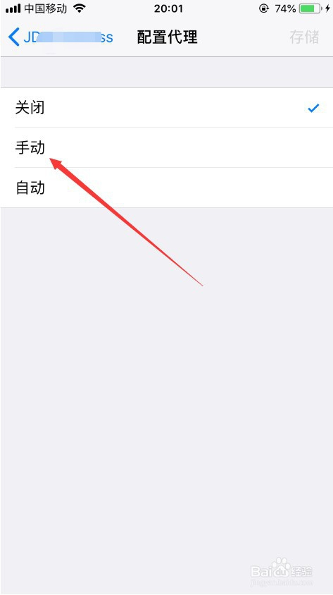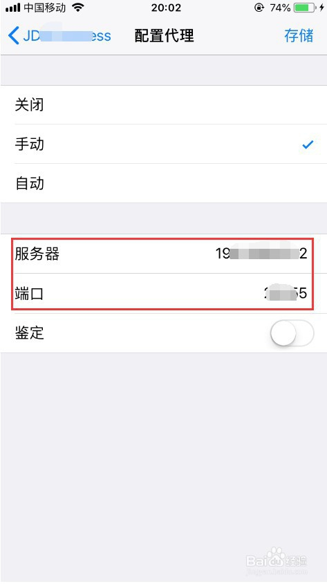 点击手动之后,就会出来一个模块让填写代办署理办事的ip和端口,准确输入即可,然后点击右上角的“存储”,如图所示。
