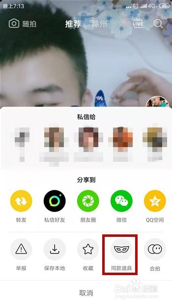 然后在分享界面中可看到【同条目道具】,点击这个功能起头利用这个道具。