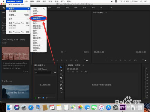 点击屏幕左上角苹果标记右侧的“Premiere Pro CC”