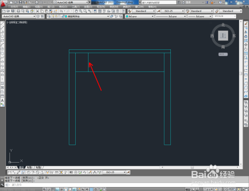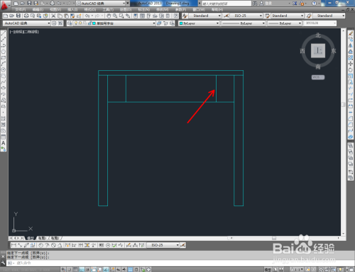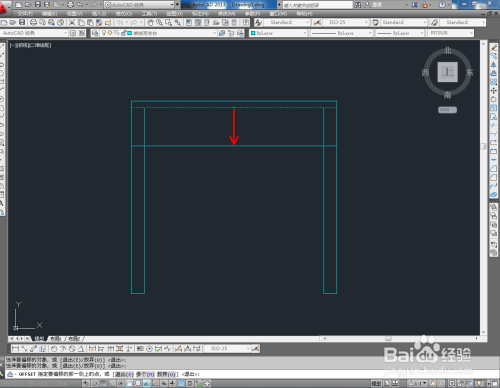 点击右边东西栏中的【偏移东西】,在号令栏输入偏移数值:25后,对顶边进行标的目的下偏移。在号令栏输入偏移数值:50后,对侧边进行标的目的内偏移。点击【修剪】对图示线段进行修剪(如图所示);