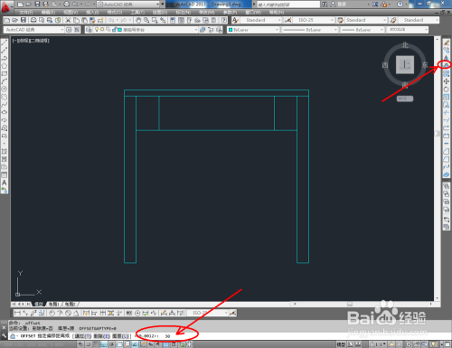 点击右边东西栏中的【偏移东西】,在号令栏输入偏移数值:150后,对图示线段进行偏移并调整好线段两段的节点位置;