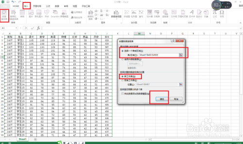 第一,打开一个班各学科成就的数据表——点击插入——数据透视表——选择一个表或区域(这里选择整个成就数据区域)——然后选择放置透视表的位置为新工作表——点击确定。