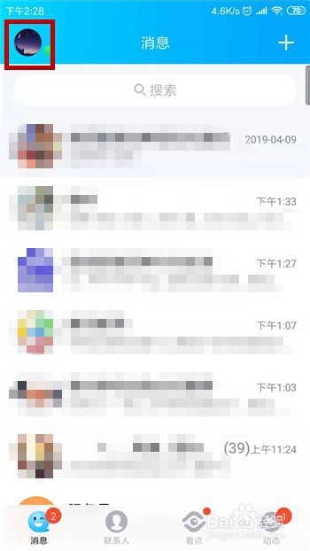 打开手机QQ,在动静首页里点击左上角的QQ头像。