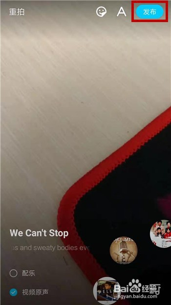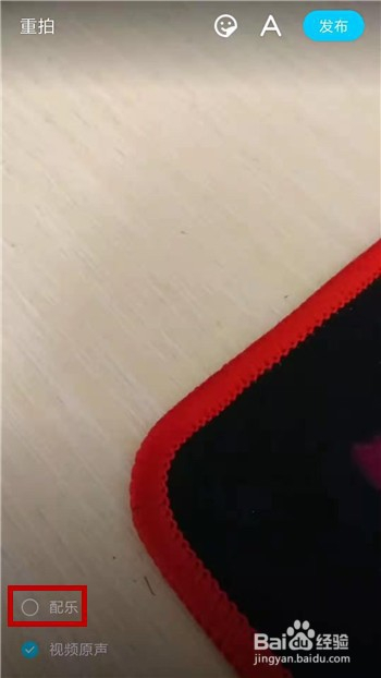 然后就进入到拍摄视频的发布界面,点击【配乐】然后可添加音乐。