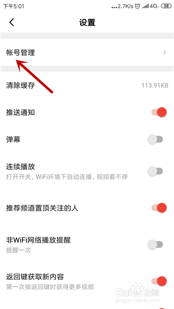 打开了西瓜视频的设置界面后点击里面的【账号办理】。