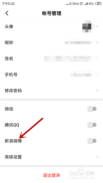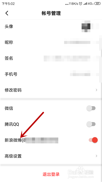 这样就当作功的绑定了新浪微博,在新浪微博的后方显示的是微博昵称。