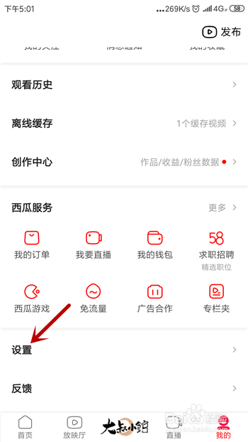 点击打开西瓜视频后,在底部的导航栏里点击【我的】。
