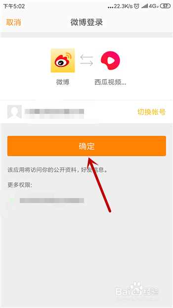 点击后会打开新浪微博的授权界面,点击【确定】按钮。
