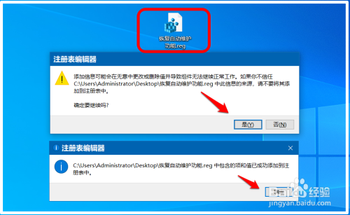 我们将【恢复主动维护功能.reg】注册表文件添加到注册内外今后,就恢复了系统的主动维护功能。