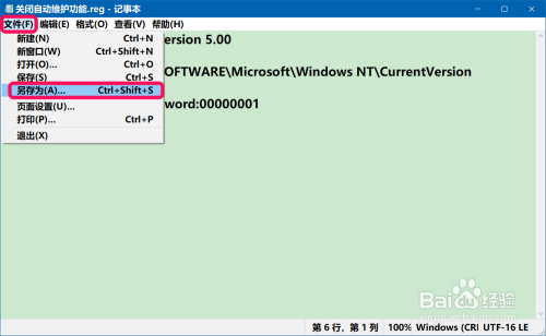 按照建造【封闭主动维护功能.reg】注册表文件的方式建造一个【恢复主动维护功能.reg】注册表文件,添加到注册表中。