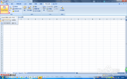 点击如图的Visual Bisic按纽,打开VBA编纂器