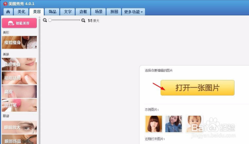 第一步:打开美图秀秀软件,在软件本家儿界面中选择“人像美容”。