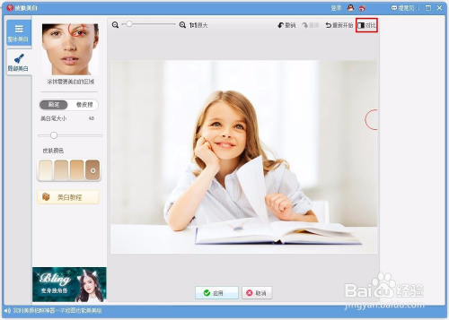第五步:在人物脸部频频涂抹至对劲的水平,单击右上角“对比”按钮,可以看到前后结果。