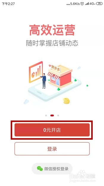 打开拼多多商家版后有两种体例,这里直接点击【0元开店】选项,如图所示。