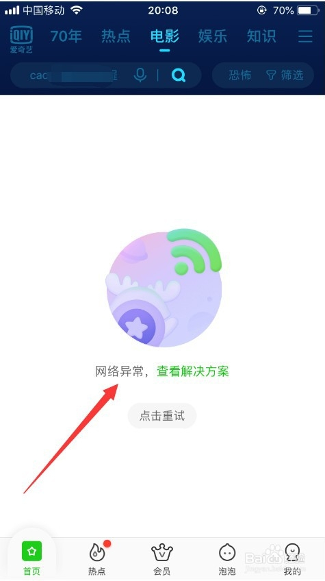 但有时我们在打开爱奇艺想要不雅看视频的时辰,却发现爱奇艺提醒“收集异常”,可是此时的收集是没有问题的,其他应用都可以正常利用,如图所示。