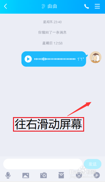 进入QQ聊天页面,在空白处,往右滑动屏幕页面,如图所示。