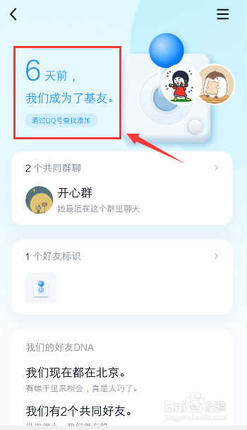 进入以下页面,就可以查看你和该老友成立几多天的亲密关系了。