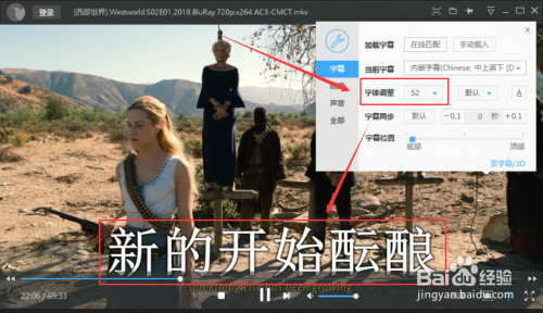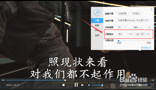 若是加载的字幕和画面分歧步,则可以经由过程“字幕同步”后面的进行调节,让当前字幕提前或者延后显示。