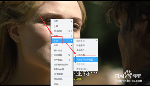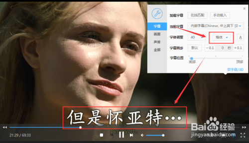 点击如图所示位置,选中睁开列表中的字体名称,还可以设置当前显示字幕的的字体。