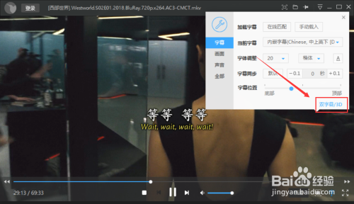 若是视频加载了多字幕,则可以选中“双字幕”进行调节。