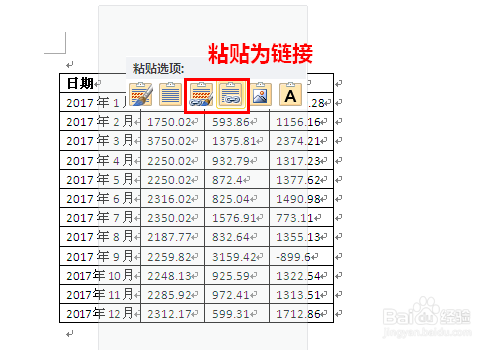 接着将适才复制的Excel表格粘贴到Word文档中。这里需要分为两种环境,Excel表格与Word表格之间是否需要发生联动?
